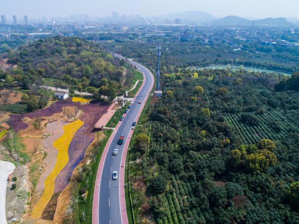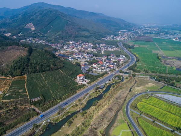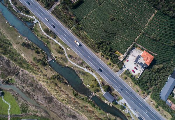 ↑这是3月27日使用无人机航拍的余杭区县级美丽公路漕雅线,道路两边进行了相应的景观提升。