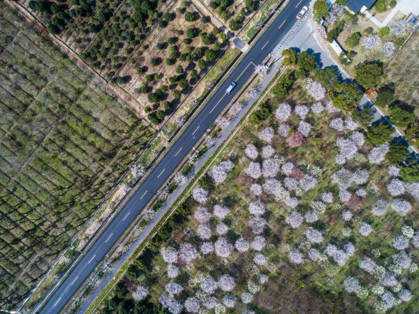 ↑这是3月27日使用无人机航拍的余杭区县级美丽公路漕雅线,道路两边樱花盛开。; ;浙江省杭州市余杭区实施“乡村振兴,公路先行”战略,从2017年春季开始启动“美丽公路”建设,通过公路洁化、绿化、美化及路域环境整治提升,助力美丽乡村建设。截至目前,余杭区已整治公路“脏乱差”点位3000多处,完成“美丽公路”建设300多公里,各镇街1000多公里村道也正在全面美化提升中。; ; 新华社记者徐昱摄影报道