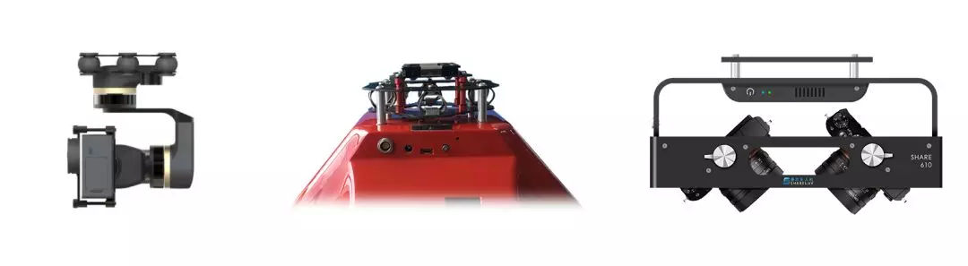 整体重量——很明显,倾斜摄影相机的单相机数量越少,整体重量是越轻的,因此,双镜头对比五镜头在产品重量上占有一定的优势,但是和倾斜摄影技术发展初期,用完整的单相机做集成不同,现在市面上部分倾斜摄影厂商在单相机减重拆解上下了大功夫,投入了不小的研发力量。五镜头相机以济南赛尔无人机为代表,五镜头相机重量在1.5KG左右,这是五镜头相机拆解减重上一个较为合适的重量比例了。
