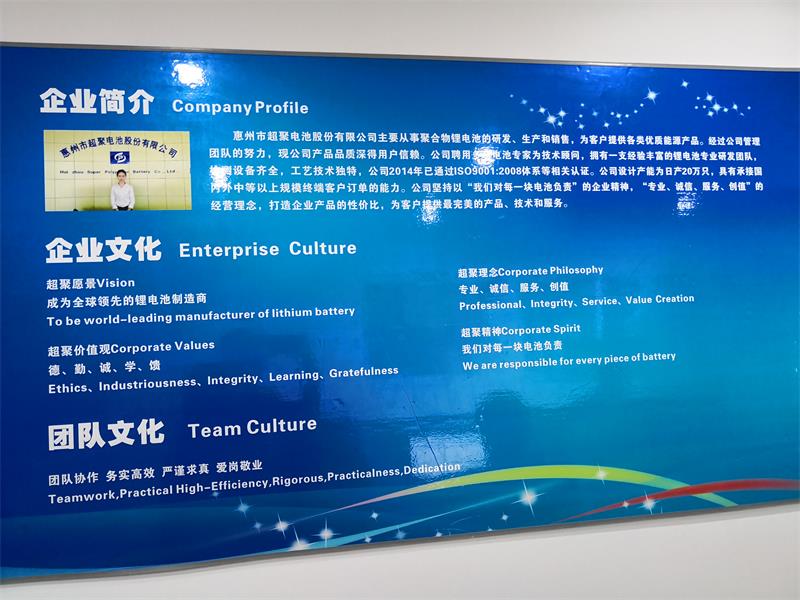 四川超聚电池是惠州市超聚电池有限公司投资的全资子公司,投入固定资产3个亿,专业生产和研发植保无人机锂电池、聚合物高倍率锂电池,年产能达到200万组以上,具有承接国内外中等以上规模终端客户订单的能力。四川超聚电池秉承着总公司惠州超聚电池有限公司的理念,从电芯、成品设计到装配,我们为您提供个性化的一站式电源解决方案。一直以来,超聚电池秉承“客户满意,员工满意,股东满意,社会满意”的经营方针,恪守德、勤、诚、学、馈的核心价值观,立志成为全球领先的锂电池制造商。