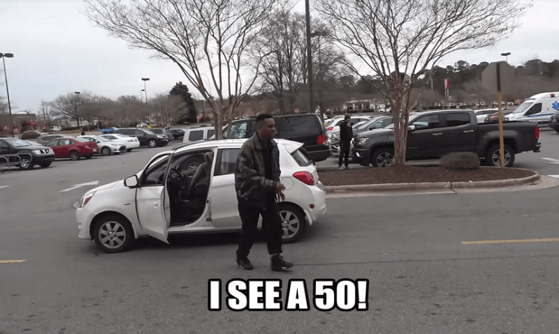 MrBeast在多个地方撒钱,包括超市门口,停车场,公园,儿童游乐场和马路。很多人见到地上有钱,即使提着大包小包,都选择冲上前执拾。有青年见到一张张钞票飘到马路上,待车辆驶过后走到马路拾取。有位女士一次过拿到总共 100 美元。她得知自己已被摄入镜头,便上前拥抱MrBeast成员和说声多谢,更听从他们的指示,呼吁观众订阅MrBeast频道和收看所有影片。