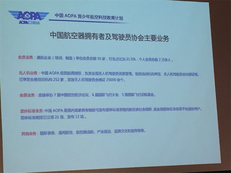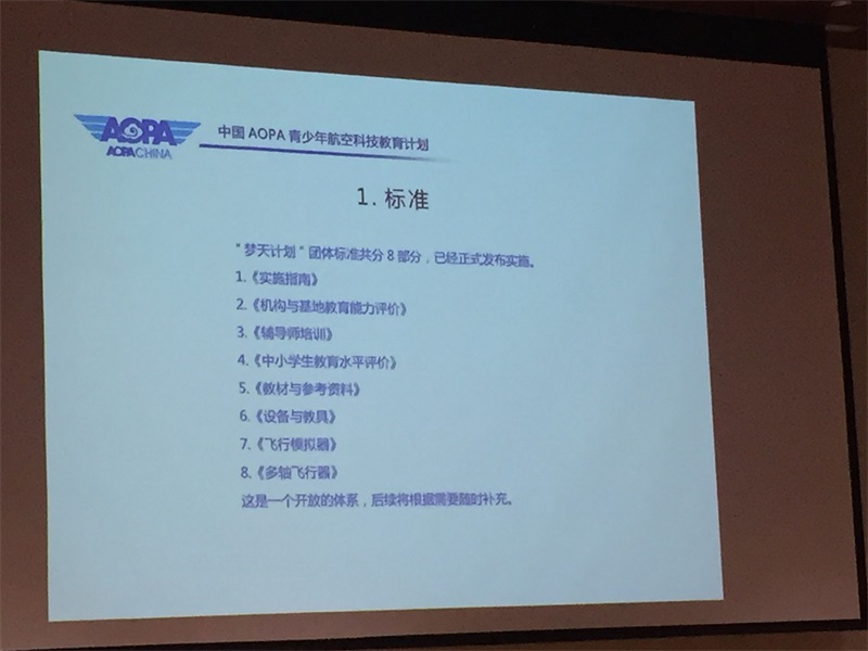 接下来是由中国AOPA标准事业部教育总监,郝凤军先生,介绍AOPA“梦天计划”。