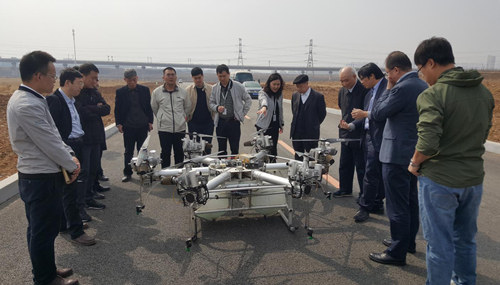 会议伊始,与会专家在壮龙科技董事长蔡茂林、总经理张黎、总工程师姜文辉、副总董义兵的陪同下,考察了壮龙科技的生产研发现场,观看了油动调速控制多旋翼无人机现场试飞和无人机行业应用视频,听取了项目完成单位所做的工作总结报告、技术报告,审阅了检验报告、科技查新报告、用户应用报告等资料。