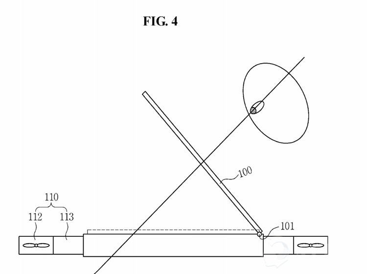 关于无人机与人类的交互,三星也有过类似设想。在名为“可飞行显示设备”的专利中,三星设计了一款可检测到人脸、眼球和手势的无人机。专利描述显示,这款无人机包括照相机和将具有传输功能的观测系统,可实时跟踪到用户眼球、头部、手部或手指运动。