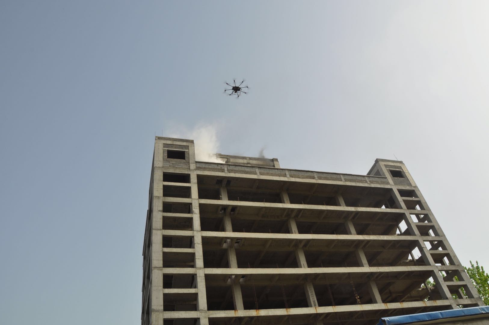 3月31日上午9点50分,陕西省宝鸡市蔡家坡经济技术开发区通峪河畔的一幢废弃高层建筑顶楼,西北工业大学航空学院李占科副教授带领的特种无人机研究团队,正在进行着高层建筑消防灭火特种无人机平台的灭火性能测试试验,从实验室模拟到这次的实弹演练,历经了N次军民融合、央地融合和部省融合的艰辛之后, 这款代号为“天龙Ⅰ号”、具有20公斤挂载能力的高层建筑专用消防灭火特种无人机平台,4月1日下午本次试验圆满收官。试验证明:该消防灭火特种无人机对A、B类火灾很具有效性。