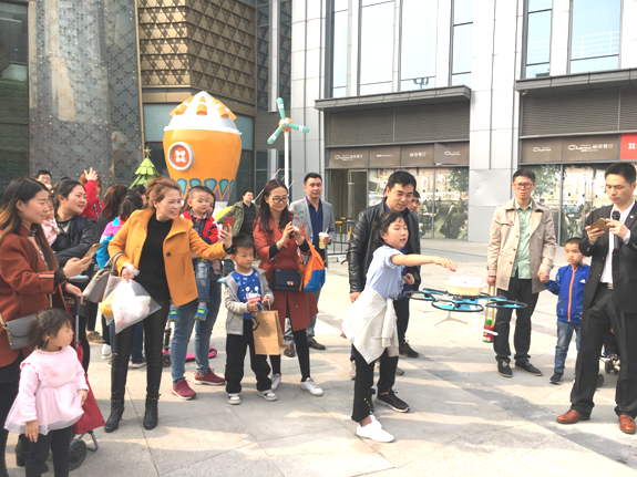 盈怀商业对于“智慧科技”的商业应用探索从未停止,2017年年底以来,盈怀商业联合莲湖区科技局共同举办了一系列科技类活动。“互动性、创意性、体验性“是科技节的众多关键词,在三月“创享科技之春”活动中,无人机应用成为重要主题,包括创新表演、科普教育、商业应用等主题吸引了众多消费者的驻足。活动现场设定展示区,配备专业工作人员对无人机的相关知识做讲解,并设置科普墙,图文展示无人机的相关知识及介绍。