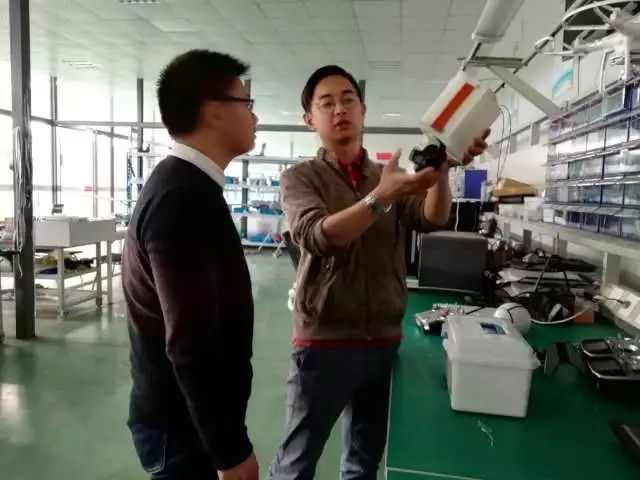 在简单介绍完机型的特点之后,周总带着小编参观我司的工作车间。在这里,电池和飞控、云台等摆放有序,工程师们进行零部件与无人机的搭载测试。每一个零部件都毫不马虎,需要准确的测试出它们的特性和使用情况。