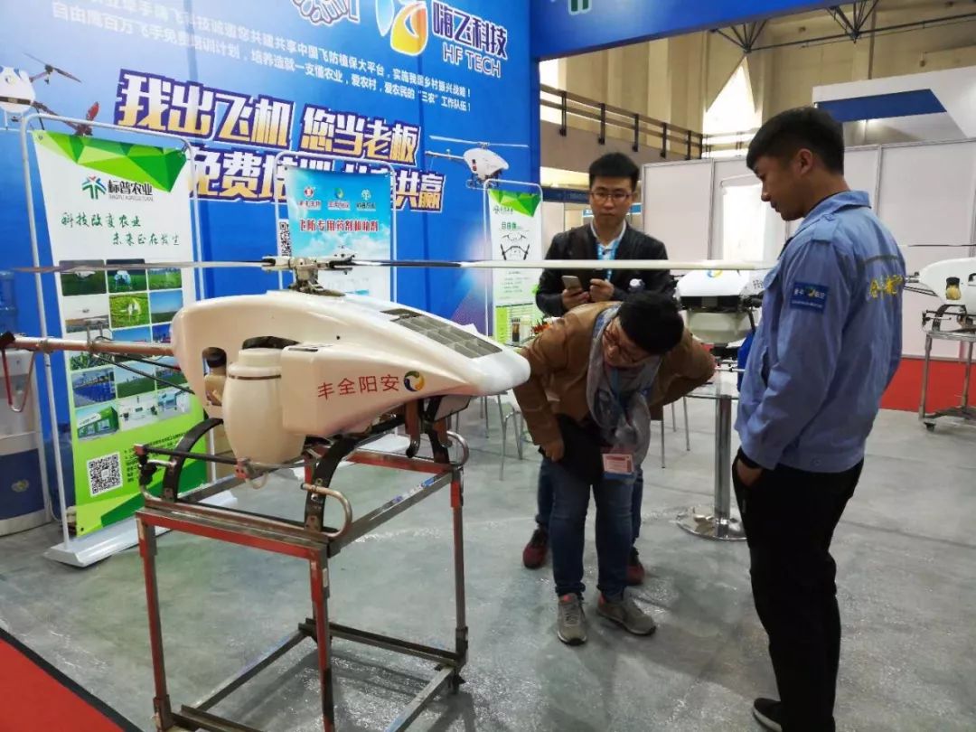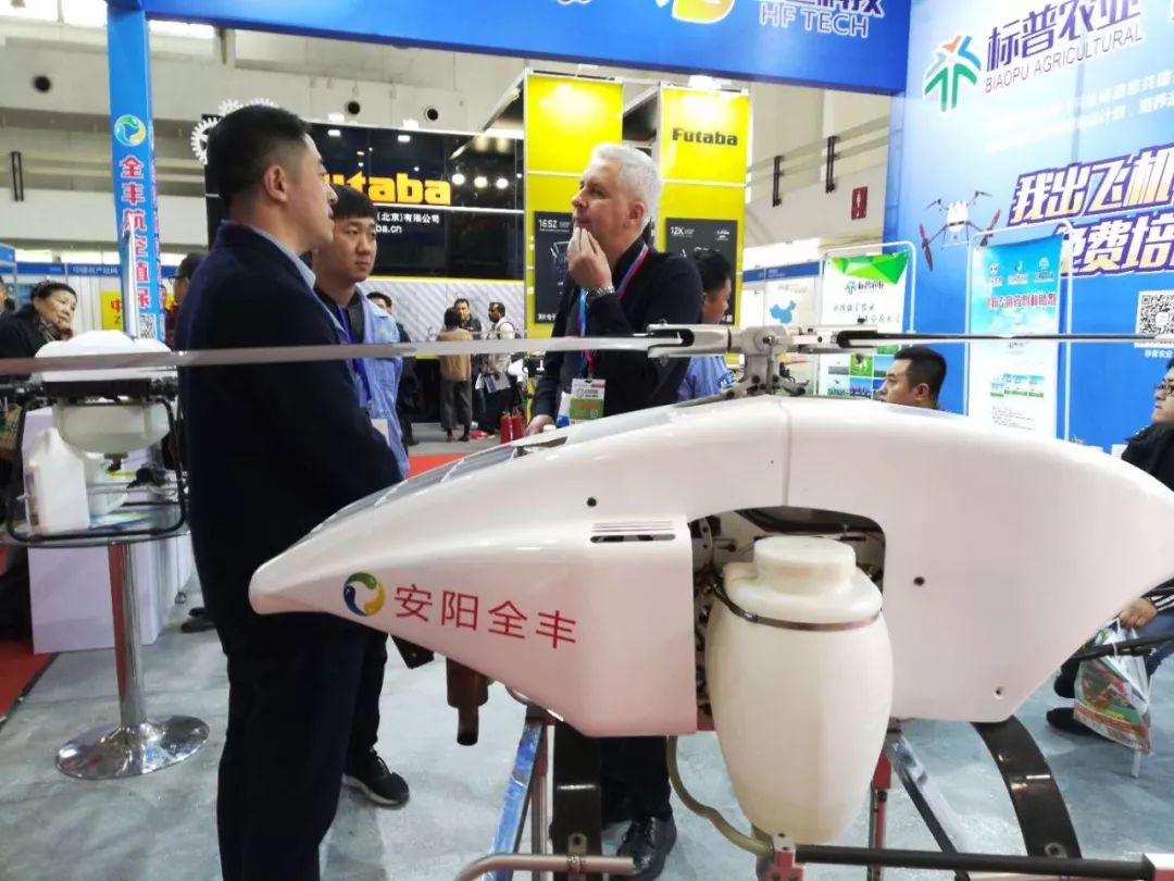 全丰航空本次展会主要携带全丰全球鹰和自由鹰两款主打机型出席本次展会。作为全丰两款主力飞防作业机型,是经过市场验证和考验的两款植保无人机。在2017年安阳百万亩小麦统防统治飞防作业和安徽泗县夏秋季30万亩飞防作业中担任主力。其在飞防作业中表现的高效、耐用、自主化程度受到用户的称赞和好评。来自台湾的陈吉昌先生对植保无人机详细进行了咨询,并且和植保无人机进行合影。