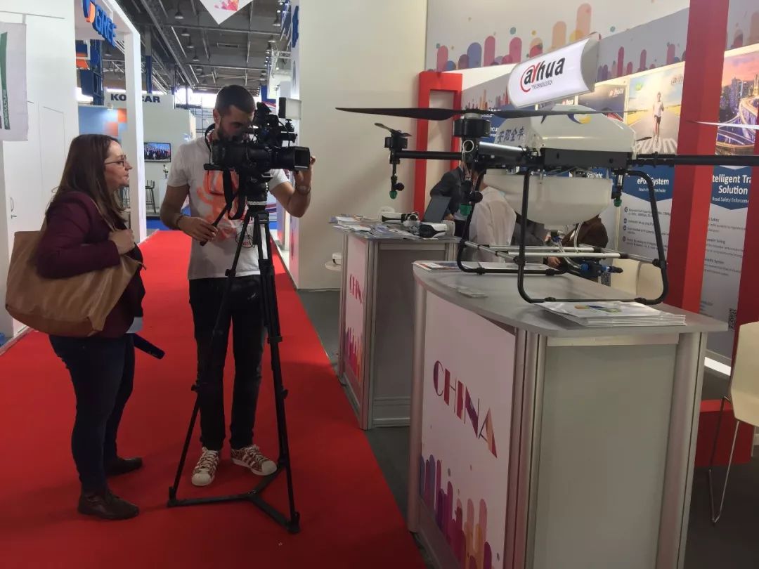 全丰航空外贸经理胡誉延作为中国参展企业代表接受了CNN波黑频道采访。采访中胡经理向CNN记者全面介绍了全丰自由鹰无人机。CNN记者问到:What is the feature of this product?(这款产品特色是什么)胡经理认真的详细的进行了回答。