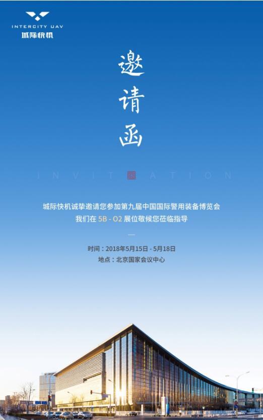 2018年5月15日-18日,第九届中国国际警用装备博览会即将在北京国家会议中心展开,城际快机与您相约5B-O2展位!诚邀广大合作伙伴届时莅临参观指导!