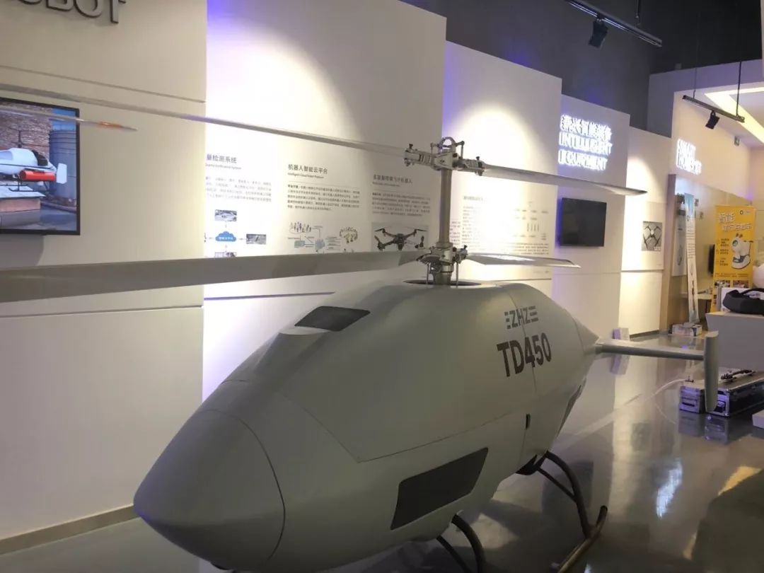 北京中航智科技有限公司的TD220、TD450共轴无人直升机和TA168四旋翼无人机参展。TD220在高层灭火、应急救灾、处突等方面的应用得到了领导们的瞩目和认可。