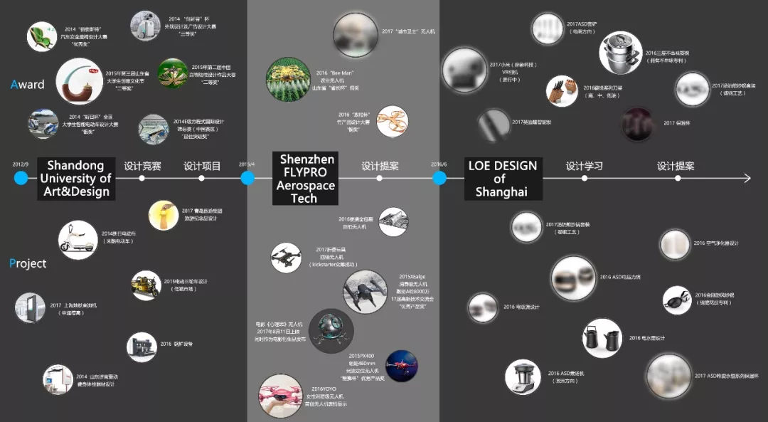 蓝恭帅:在深圳呆了一年半的时间,做了6款无人机的设计,量产的有3款,却总想着去学习一下别人是怎么做设计的。加上毕业要回学校,在学校完成学业的期间就做了一个出乎所有人意料的决定。放弃高薪的工作去上海,从零开始去一家设计公司学习如何把设计做的更好。其实这样的决定对我而言并不意外,在我的规划里这也是必走的路,人只有不断的学习才有可能不保持“原地踏步”。
