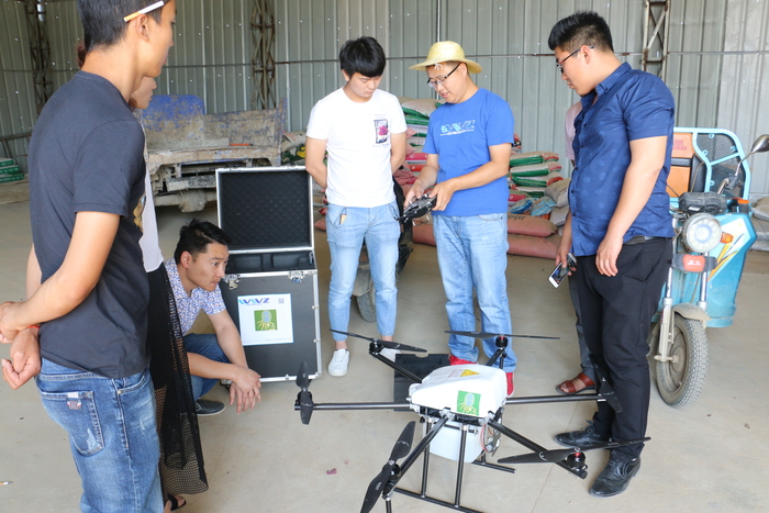 5月底,阜阳的天气格外晴朗,炎炎烈日,骄阳似火,但各位农场主的学习热情却分外高涨。各学员五人为一组,在公司培训师的讲解下,现场观摩了解了植保无人机的构造,并按照步骤拆装无人机,熟悉飞机及遥控器各部件的功能和使用方法。
