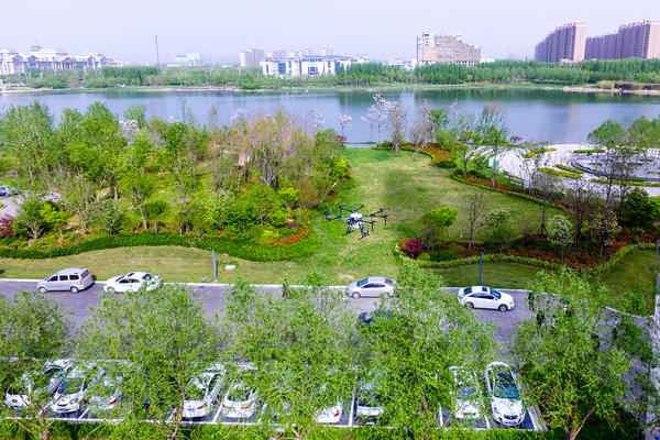 “城市中到处是树木、电线和高楼,而无人机对GPS的精度要求非常高。此次在龙子湖公园区域作业,主要是这一地带空旷,电线和高楼等干扰较小,适合无人机喷洒作业。”