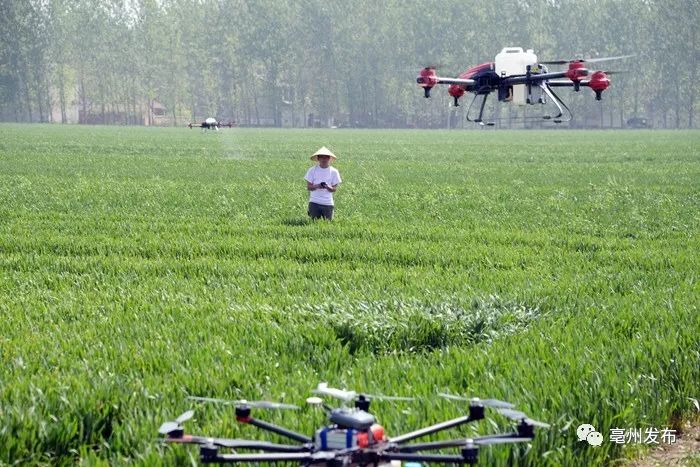 当下亳州市正值小麦“一喷三防”的关键时期,小麦进入拔节期,条锈病、赤霉病等多种病虫害高发,为切实做好小麦抽穗期病虫害防治工作。谯城区农业部门通过向企业购买服务的方式开展无人机植保,提高防控效率,防治小麦病虫害。