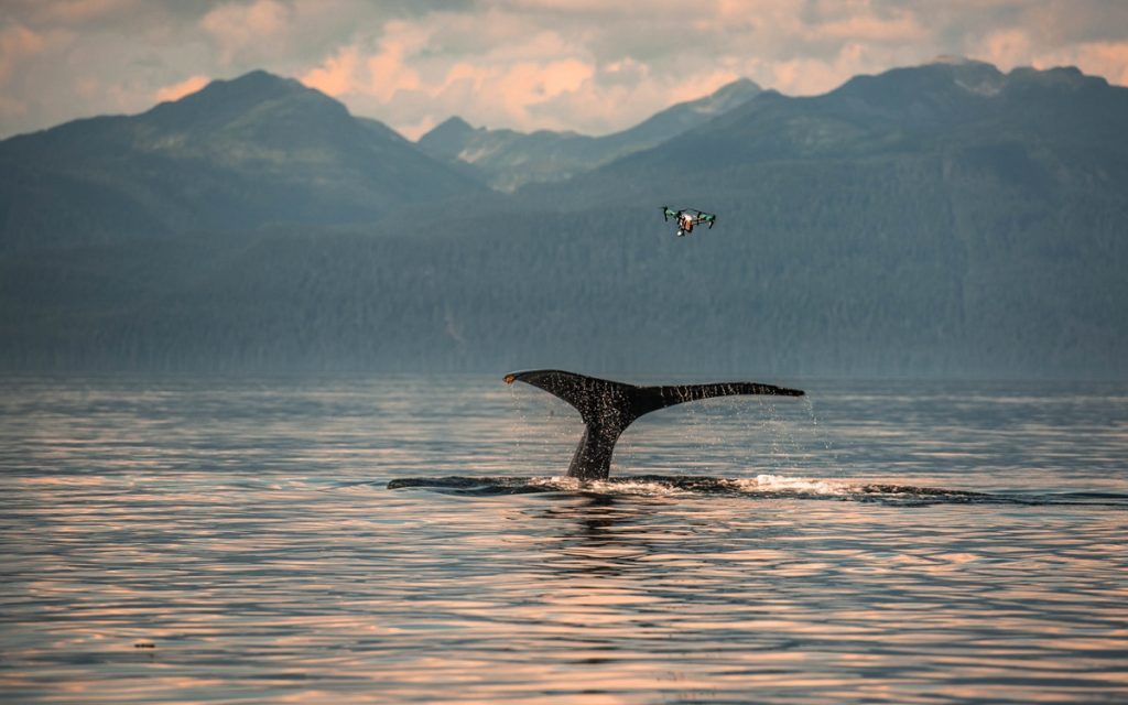 配合 Intel 的无人机技术,Intel 正在尝试通过无人机和人工智能一起来观测鲸鱼,Intel 的无人机甚至能够直接采集到鲸鱼喷出的水流,通过生物特征分析甚至可以得知鲸鱼有没有怀孕。