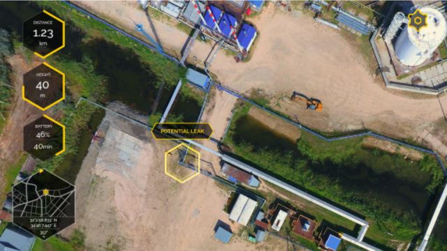 和房地产开发类似,无人机飞得高看的全,能很好地胜任测量等任务,方便规划者在设计时考虑到建设的方方面面。图中蓝色黄色线条所显示的区域是地下管道以及其他值得注意的地下细节,统统可以显示在屏幕上。