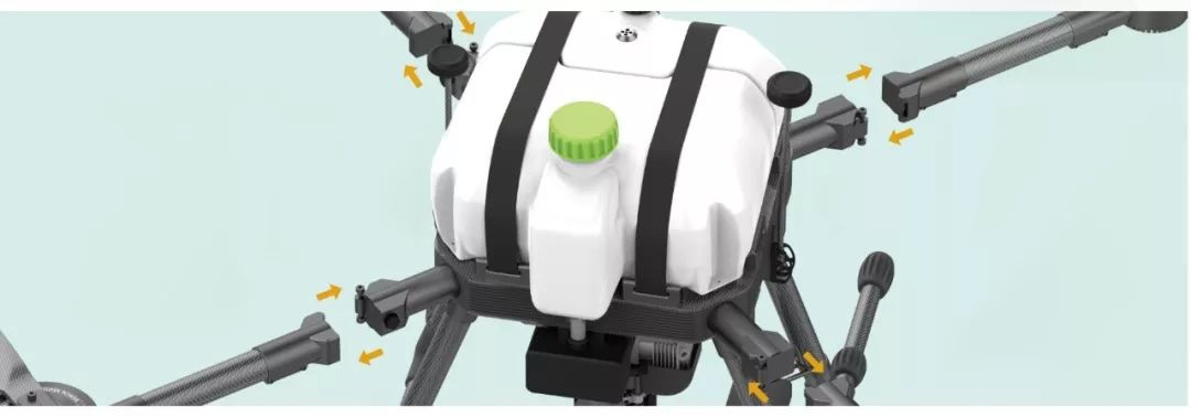 AG15油电混合无人机机臂采用四轴无工具横向折叠环抱型结构设计,结构紧凑牢固。折叠之后整机呈现环抱式,在保证结构强度需求的同时方便日常运输及装配,减少飞机的占用面积,为工作人员减少装箱的难度节省组装的时间,对运输工具的要求也大大的降低。