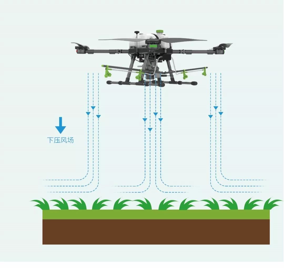 采用大动力电机及碳纤维螺旋桨,不仅为机体提供强劲动力,还可产生强大的下压风场,作用于桨叶下方的专业防风喷头,有效减少药雾被旋翼气流卷起,使药雾喷洒穿透性更强,覆盖更均匀,提高喷洒效果,还能防止机身药雾的残留,保证无人机接触的安全性。