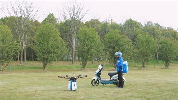 当美团无人车还在拥挤的路上堵着,饿了么的无人机早已飞过拥挤的路面,向用户飞去。