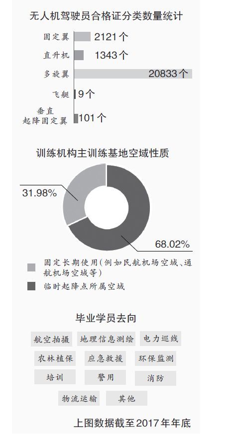记者在《报告》中看到,截至2017年年底,我国民用无人机驾驶员合格证总数为24407个,仅2017年下半年,合格证总数就增加了8862个。从年龄结构看,1986年至1994年出生的无人机驾驶员占到驾驶员人数的60.38%,成为无人机驾驶员的主力军。
