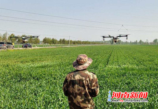 眼下,河南省周口市小麦陆续进入抽穗和扬花灌浆期,以赤霉病防控为重点的小麦“一喷三防”进入关键时期。4月25日,由10名安阳师范学院学子组成的“高科技爱心助农服务队”,携智能无人机设备走进淮阳县村民李国生的小麦大田,利用高科技智能无人机植保技术,进行“量身定做”的植保服务。
