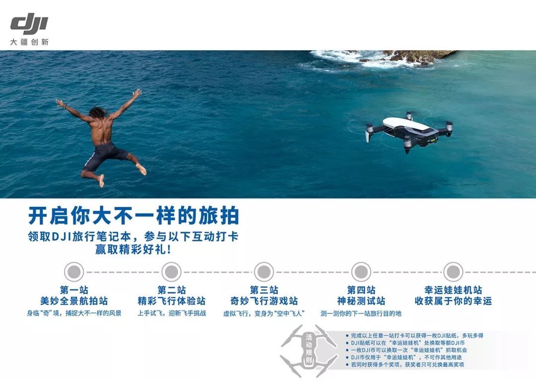 参与以上任意互动,均可在活动现场领取一枚大疆游戏币,多玩多得!