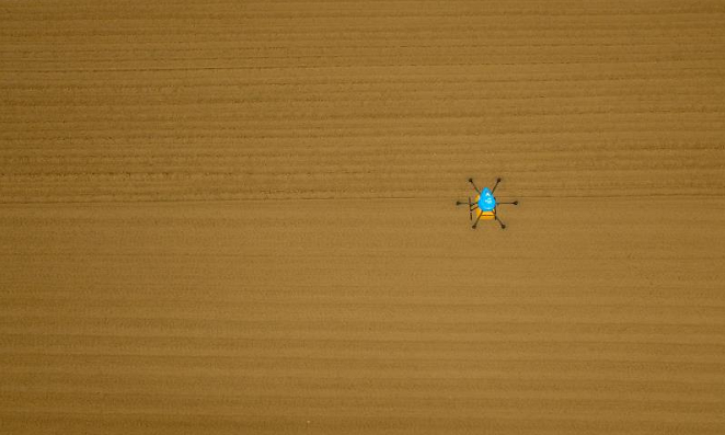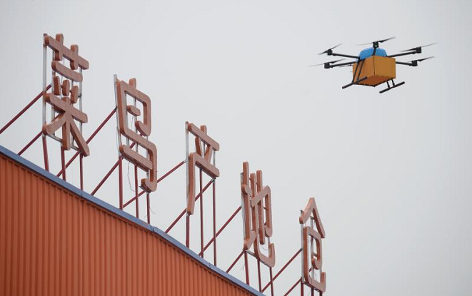 新鲜采摘的乳瓜被装入菜鸟无人机内