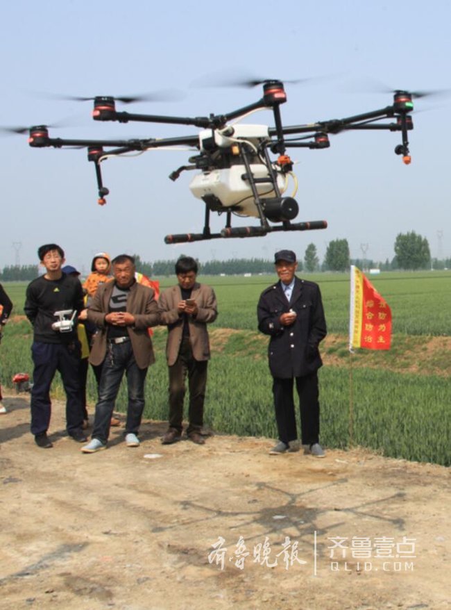 “用无人机打药效率真是太高了,10亩地十来分钟就打完了,不压小麦,喷洒均匀,真是又快又好!”4月26日,在邹城市北宿镇麦田上空,随着无人机快速轰鸣而过,药物均匀地喷洒到小麦叶面上,高效的飞防作业让在场的群众无不点赞。