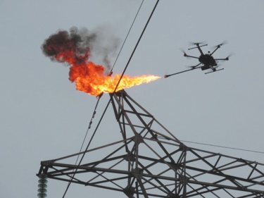新型喷火无人机进行消缺作业