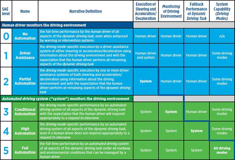 美国汽车工程师学会划分的自动驾驶汽车等级