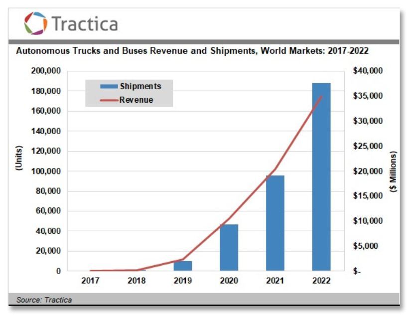 自动驾驶卡车和自动驾驶巴士,Tractica 2018