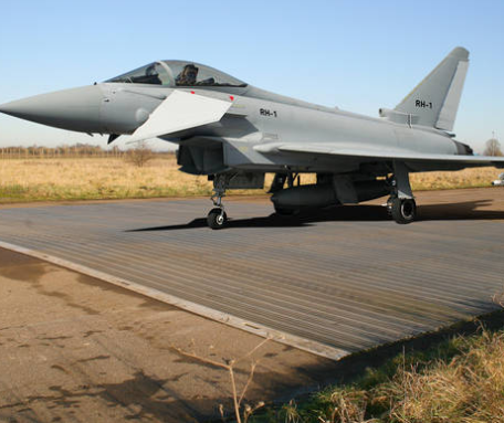英国FAUNTrackway是一家在野外可以迅速搭建简易机场跑道的公司,跑道形状如同履带,可以通过越野车进行部署。可在需要时铺出50米长的道路,可承载高达70吨的车重。待所有车都通过后,铺路车又可以把路面收起来继续前进。