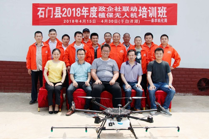4月30日上午,由石门县农机化局组织的为期15天的2018年度“政企社联动”暨植保无人机培训班在蒙泉镇白洋湖居委会顺利、圆满结业,并举行了结业仪式。