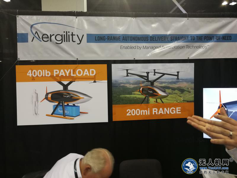 无人机网参与美国国际无人系统协会(AUVSI)在美国丹佛所举办的XPONENTIAL 2018展会上了解到AERGILITY研发的高载重多旋翼无人机。