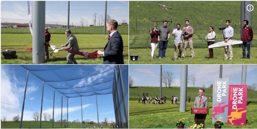 弗吉尼亚理工大学开设了自己的无人机公园,该公园完全被网包围起来。该公园面积有美式足球场大小,大概300万立方英尺的飞行空间。并且有八层楼高,顶部高达85英尺,已成为美国最高的公园。