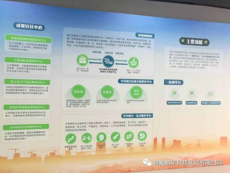 中心将重点建设广东省“国防四库”、军民融合技术成果交易孵化平台和军民融合一站式服务平台等,旨在立足珠西、服务广东、辐射全国,着力搭建军民融合信息渠道,促进“军转民”和“民参军”双向转移和良性互动,推动国防科技工业资源在广东地区集聚,打造全国重要的军民融合产业发展示范平台。