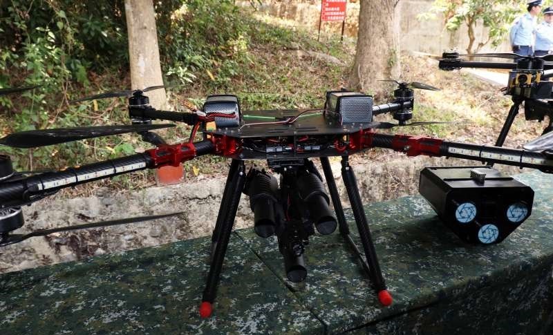 台湾国防部展示的武装无人机从去年开始研发,可搭载步枪、榴弹发式器或捕捉网,前两者提供空中火力,从地面战的平面攻击变成空中攻击,可扰乱敌人和提高心理压力;至于捕捉网则是对应不法入侵的无人机而使用。捕捉网和榴弹砲同为三联装设计,可作三次发射。