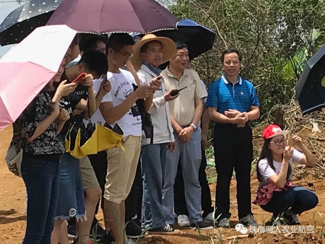 羽人飞防服务队的贺经理热情接待一行领导和青年学生,向领导和青年学生介绍植保无人机的卓越性能。在飞防植保现场,植保无人机在飞控手的操控下,按照设定的路线给甘蔗地有序进行喷洒农药作业,短短几分钟的时间,就完成了大面积的喷药任务。整个作业过程轻松、快捷、高效。