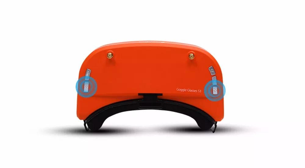 S3 FPV视频眼镜外观颜色跟S2一致,都是以橙色为主调,黑色辅助搭配。S3的设计更为简洁精巧,配戴起来舒适感更足。它的光学镜头可以根据个人瞳距调整到合适的位置。