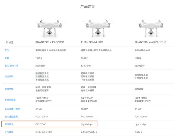 相比旧款,精灵 Phantom 4 Pro V2.0 的最大改进在于其图传方案由 LightBridge 改为了 OcuSync,并加入了降噪螺旋桨配置。