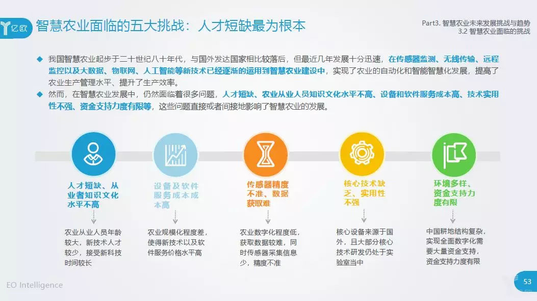 智慧农业的未来发展仍然存在很多问题,土地不规整、人才短缺、技术能力差、环境多种多样,而人才短缺是当前面临的最主要问题。