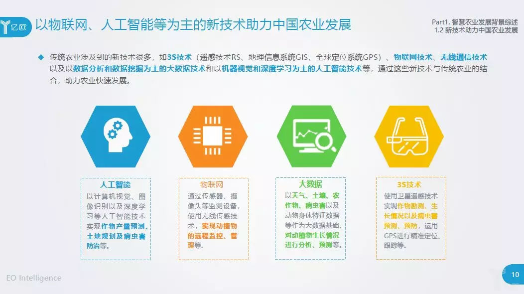 亿欧智库此次推出《2018智慧农业发展研究报告》(以下简称报告),希望以新技术为出发点,农业生产环节为落脚点,系统性输出当前行业实际应用情况,同时提出了几点关于智慧农业未来发展的建议。由于时间与能力的限制,疏忽之处在所难免,希望各位读者批评指正。