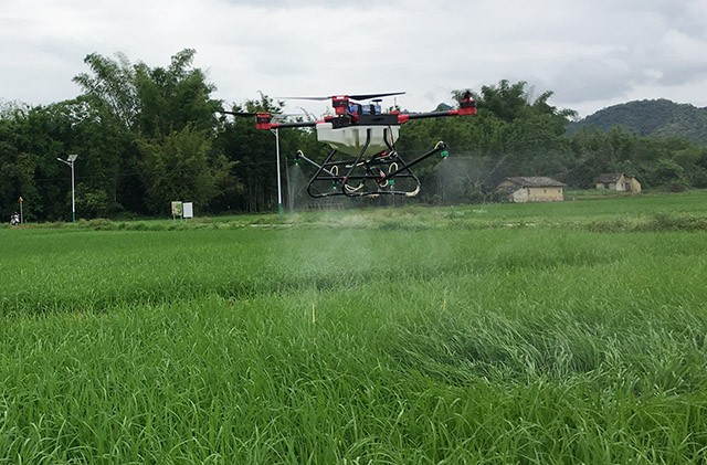 据水稻病虫害统防统治作业组织负责人廖淦初介绍,该组织从5月6日开始分别到县良种场、龙田镇等地,使用天鹰兄弟植保无人机对连片种植的水稻开展病虫害统防统治作业。廖淦初表示,植保无人机采用超低容量喷雾,首选低毒高效的农药进行病虫害防治。该植保无人机可载重农药10升/架次,作业面积为8至12亩/架次,每架日作业面积可达200至300亩。