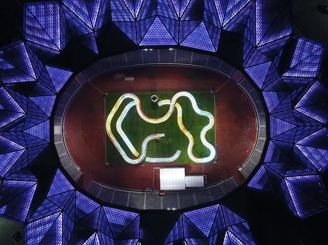 而此次举行世界无人机锦标赛测试赛是首届世界无人机锦标赛的预演。其场地设计、搭建,竞赛规则、竞赛日程等都完全按照世锦赛的标准执行。据悉,本次比赛的赛道设计创造了多项全球第一。它是全球第一条搭建于钢架结构体育场馆内的空中3D多层立体并应用实时飞行跟踪技术的赛道,也是全球第一条应用实时飞行跟踪技术具备实时模拟地图显示功能的赛道。赛道轨道LED灯带总长度世界第一,总长超过6公里,此外赛道设计还融入本地特色,走势呈现深圳地图形状。