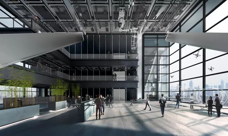 值得一提的,是设计团队在总部大楼中设计的特别实验区,供无人机试飞。