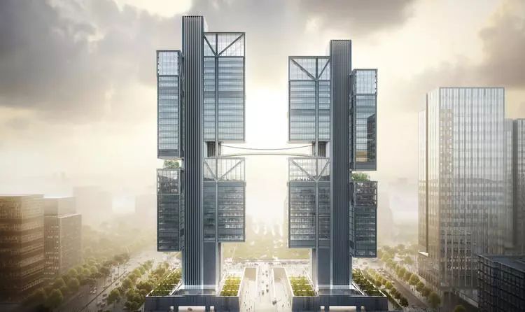 这次福斯特事务所为大疆设计的“空中社区”总部方案,是悬浮玻璃形式的双塔结构,试图挑战人们对于办公建筑的传统概念。