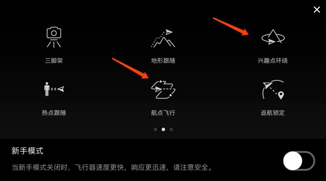 智能环绕功能与航点飞行两个功能最低的使用高度为5m,白天踩点时,建议用这两个功能将事先飞好的轨迹记录下来,若想用智能环绕做出自动刷锅的动作,则推荐使用航点飞行功能设置初始航点作为“刷锅”圆心的事先记录。