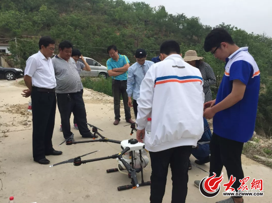 5月15日上午,垛庄上射垛村第一书记邀请林业局专家到村入户为果农讲解果树病虫害防治。讲解结束后,一架无人机在章丘中等职业学校学生的遥控下,平稳升空,利用飞机挂载的喷洒系统将药液均匀地喷洒而下,二十分钟左右就完成了上射垛村周围100多亩山地的农药喷洒工作,学生熟练地操作了得到了现场专家和村民的高度赞扬。