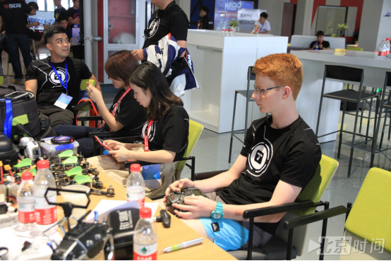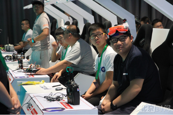 选手们通过头戴显示器操作无人机(潘琦 摄)